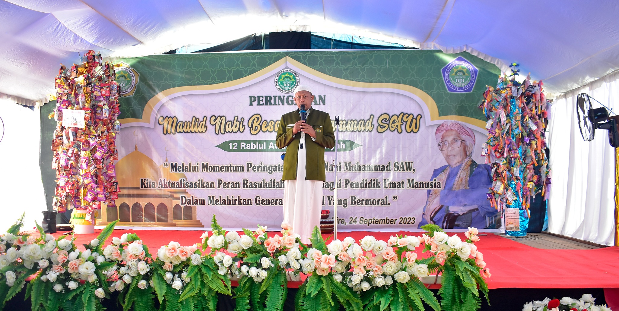 Dalam suasana penuh kekhidmatan dan cinta kepada Rasulullah ﷺ, Pondok Pesantren DDI Bukit Cenderawasih Nabire menyelenggarakan peringatan Maulid Nabi Muhammad SAW sebagai bentuk penghormatan dan rasa syukur atas kelahiran Sang Nabi Agung, pembawa risalah Islam. Kegiatan ini diisi dengan pembacaan maulid, shalawat bersama, tausiyah, dan penampilan seni Islami dari para santri yang mencerminkan semangat cinta Rasul dalam kehidupan sehari-hari.